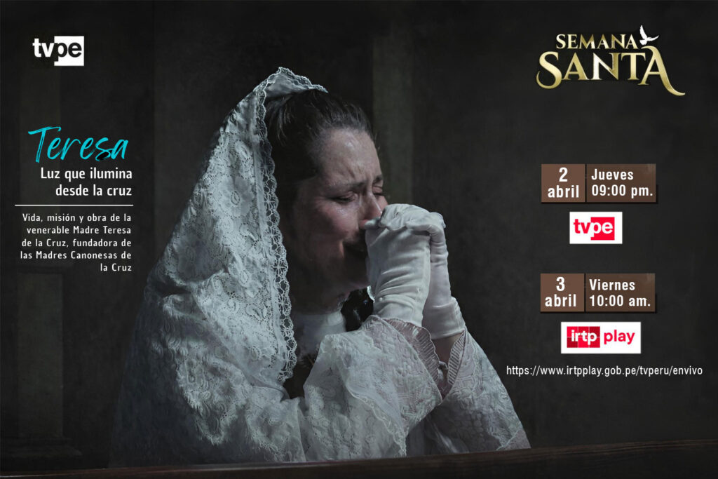 Este jueves 2 de abril, a las 9:00 p. m., se emitirá el documental “Teresa, luz que ilumina desde la cruz”, del cineasta Rubén Enzian, a través del cual se narra la vida, obra y legado de la Madre Teresa de la Cruz Candamo, fundadora de las Madres Canonesas de la Cruz, destacando su vocación de servicio, compromiso con los más vulnerables y la labor evangelizadora de su congregación.